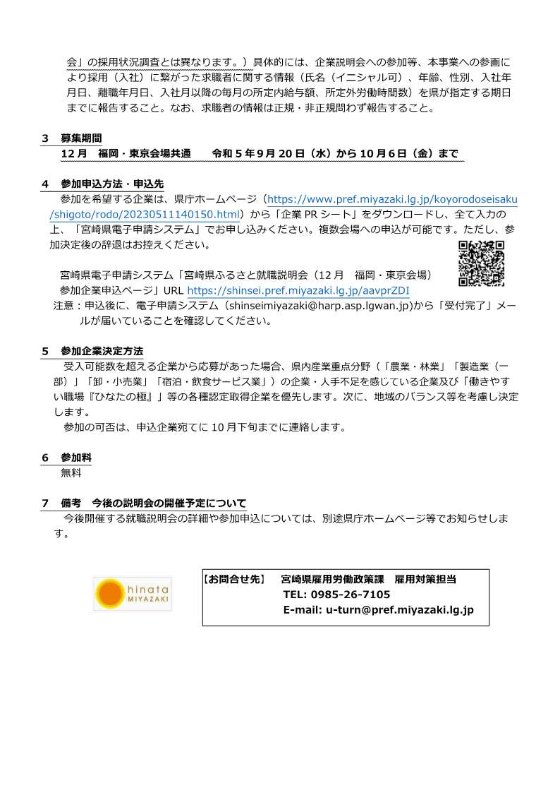 【お知らせ】「宮崎県ふるさと就職説明会(東京会場)」参加企業募集!