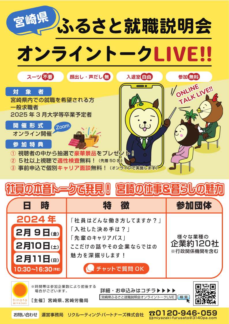 【お知らせ】「宮崎県ふるさと就職説明会(オンライントークLIVE!)」参加者募集!