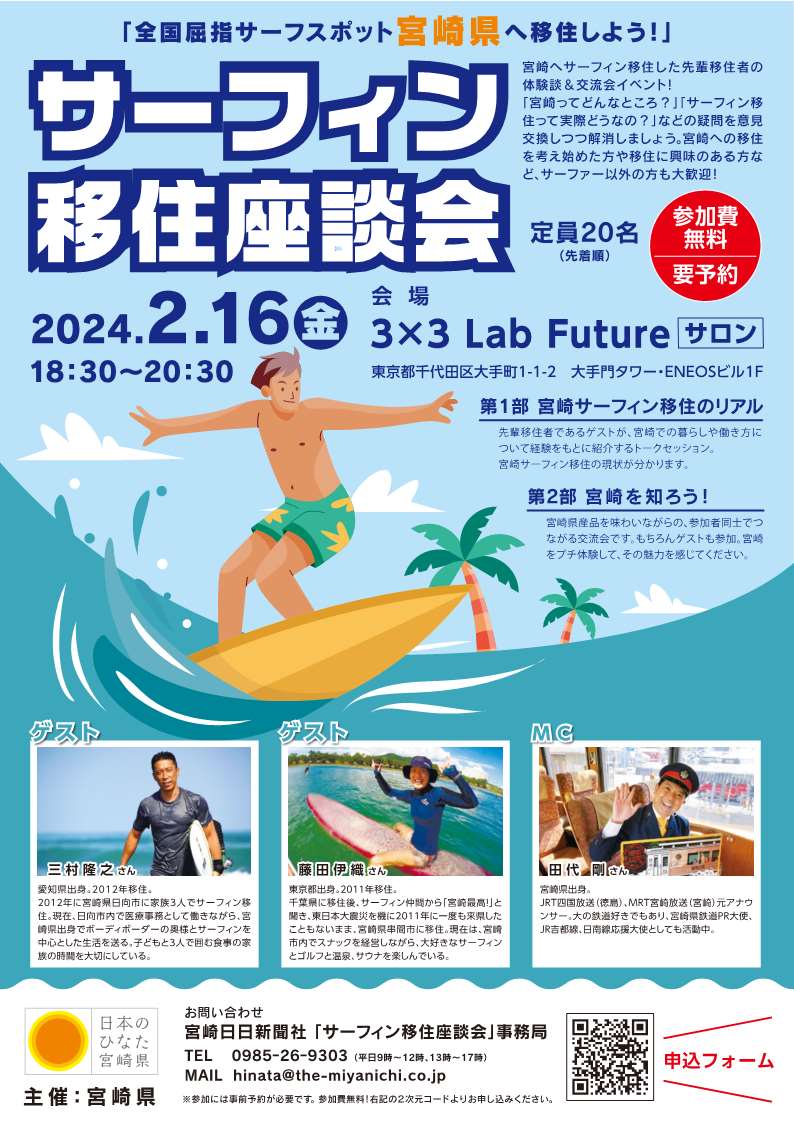 宮崎へサーフィン移住した先輩移住者の体験談トークセッション&交流会イベントを開催します。