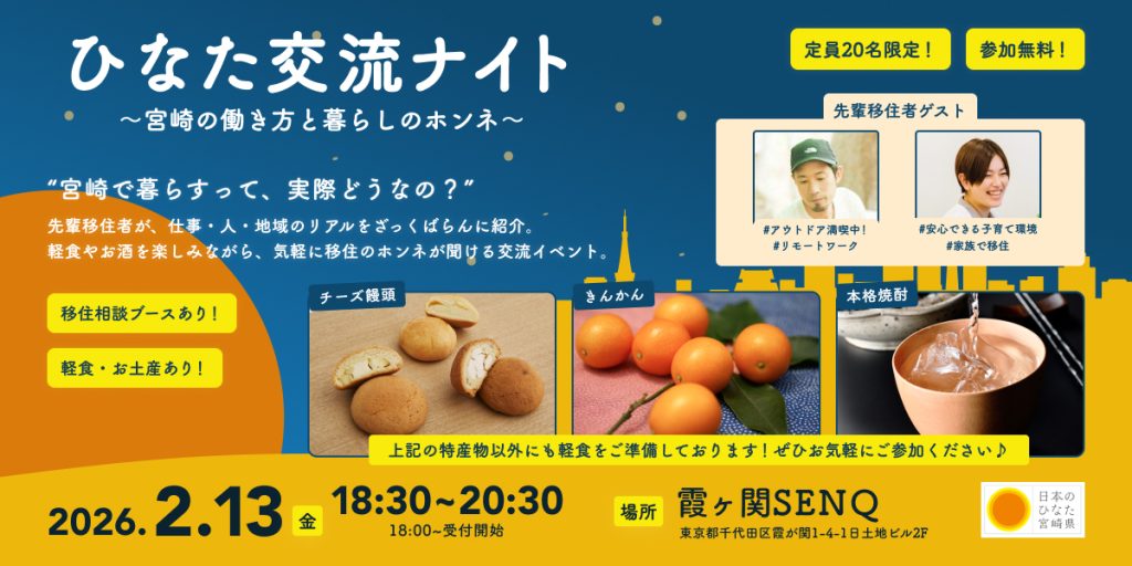 対 象:宮崎への移住・就職希望者、地方暮らしや宮崎に関心のある首都圏在住者