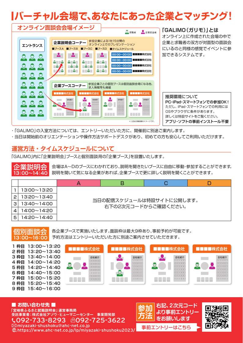 なお、参加方法や説明会の配信スケジュールなど詳しくは、特設サイトhttps://www.ahc-net.co.jp/lp/miyazaki-shushoku2023/02/をご覧ください。