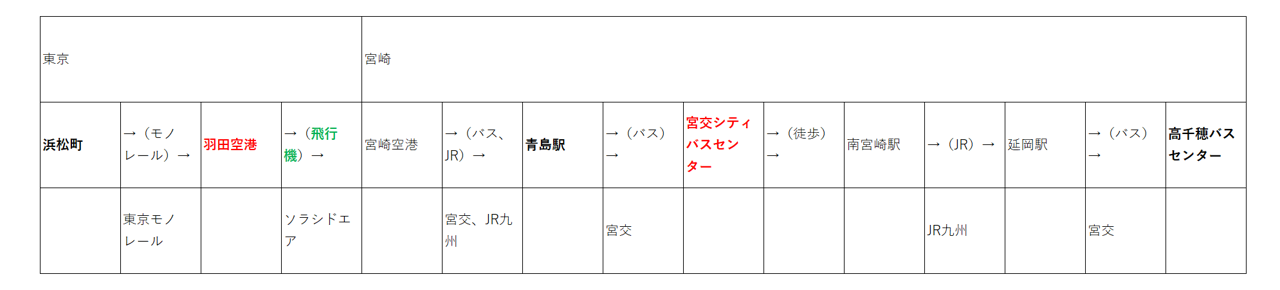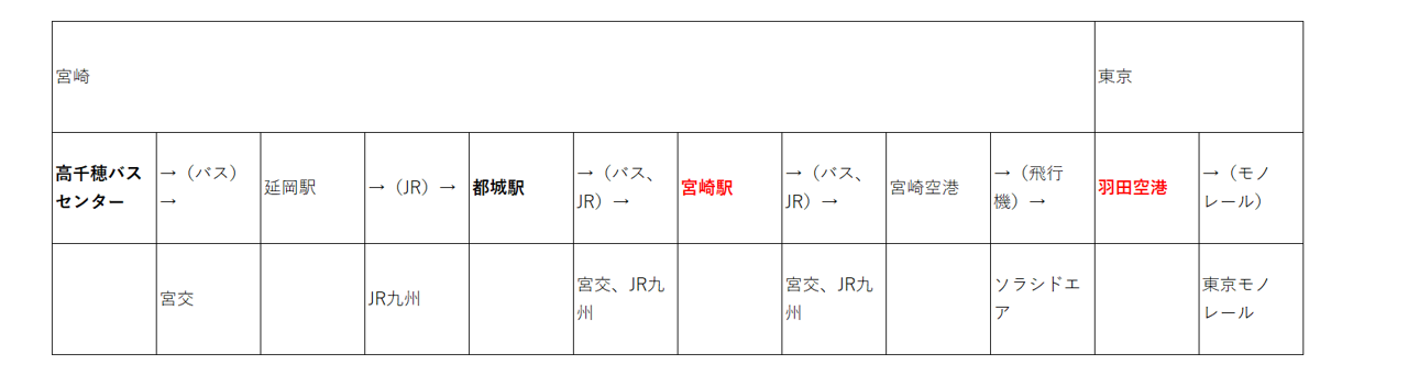 【必須】羽田空港第2ターミナル駅、宮崎駅、宮交シティバスセンター